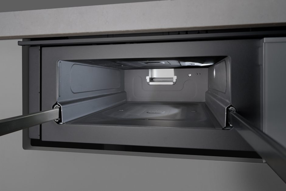 さらに、上下平面ヒーターを採用し、庫外に扉レールを配置することで、フラットな庫内を実現しました。これにより、サッと拭き掃除がしやすくなります。さらに、食材から出た油がヒーターに触れないため、調理中の油煙の発生も抑えられます。