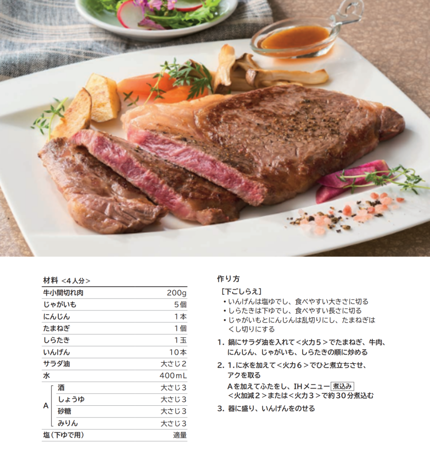 「CROSS+TOPシリーズ」には多種多様なモードが搭載されていますが、「かきまぜ加熱<煮込み>」は鍋底の焦げ付きや野菜の煮くずれを防ぎ、安心して煮物を楽しめるモードです。また、「かきまぜ加熱」機能により、食材が均一に加熱され、味がしっかりと染み込みます。これらの機能を活用することで、手間いらずで美味しい肉じゃがを簡単に作れます。まさにプロの味を再現できる心強いパートナーですね!
