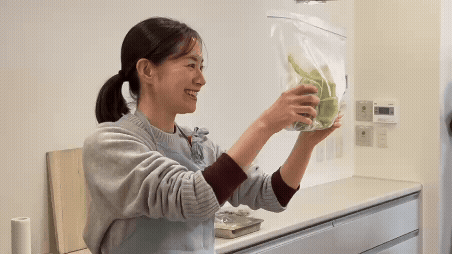 実際に会場では、「できちゃうV冷凍+」の体験も実施されました。実際「できちゃうV冷凍+」で冷凍したピーマンを触ってみると、指先で軽く押すだけでパキッと割ることができました。手で野菜を砕く感覚は新鮮で、普段面倒なみじん切りが楽しくさえ思えました!